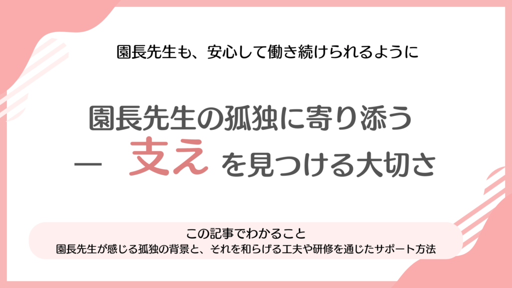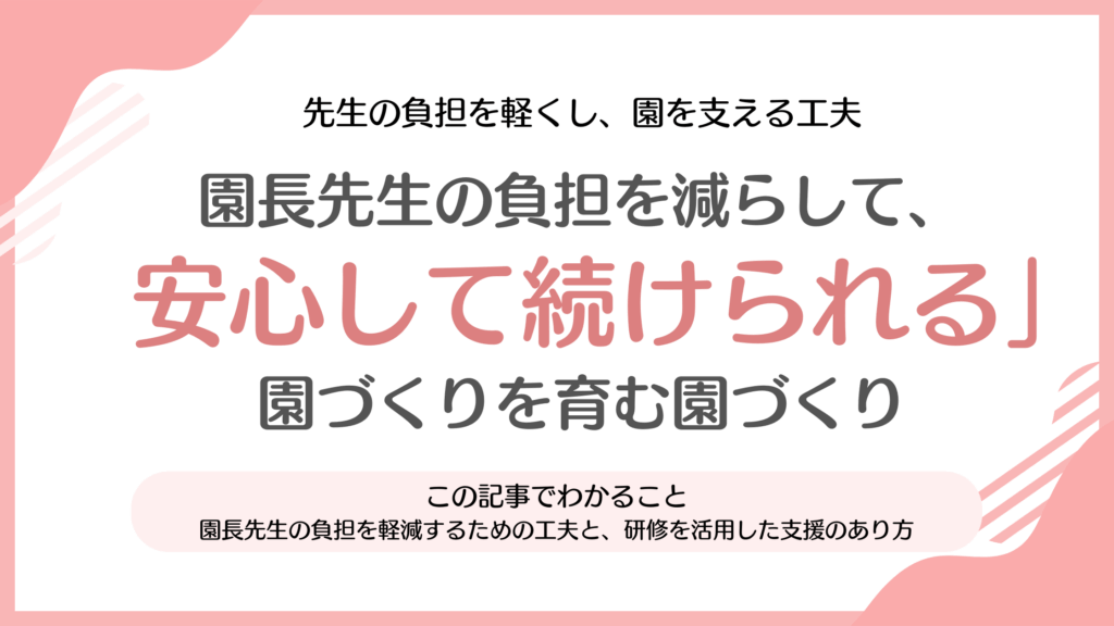 「園長や主任が安心して続けられる環境づくり」を支援しています。