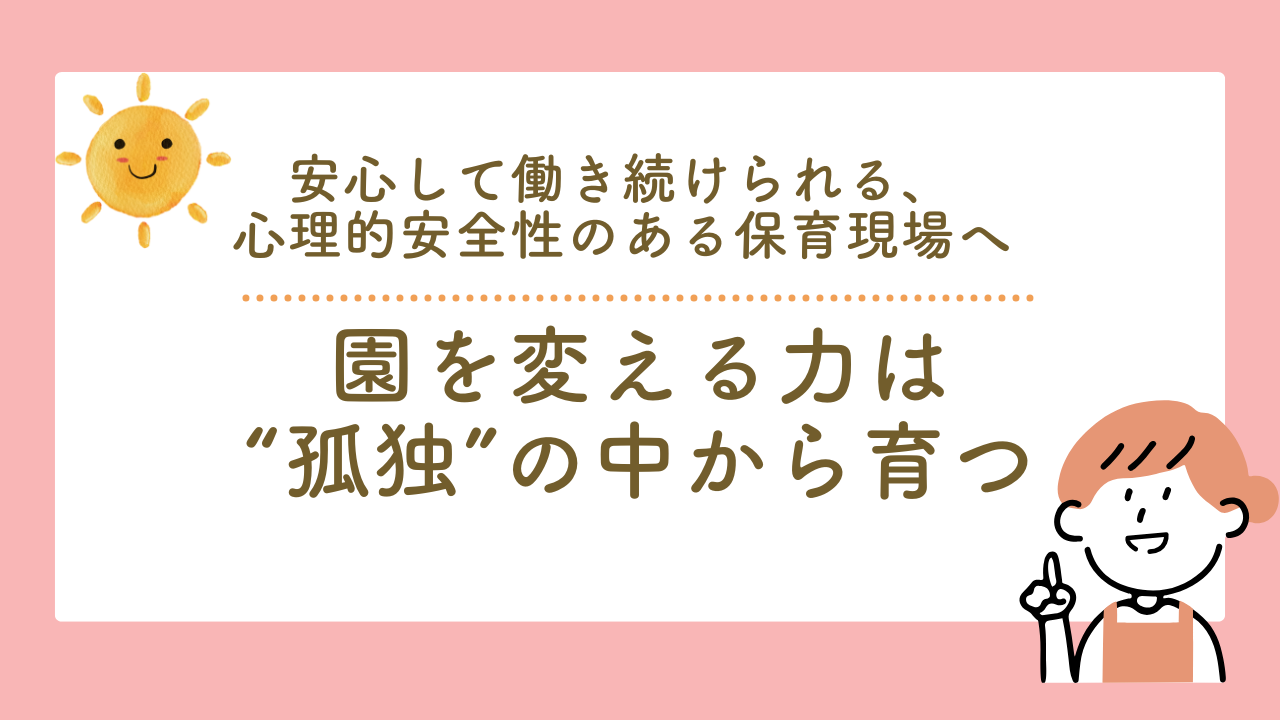 そんな思いで、一人で抱え込んでしまう園長先生や主任さんは多いでしょう。