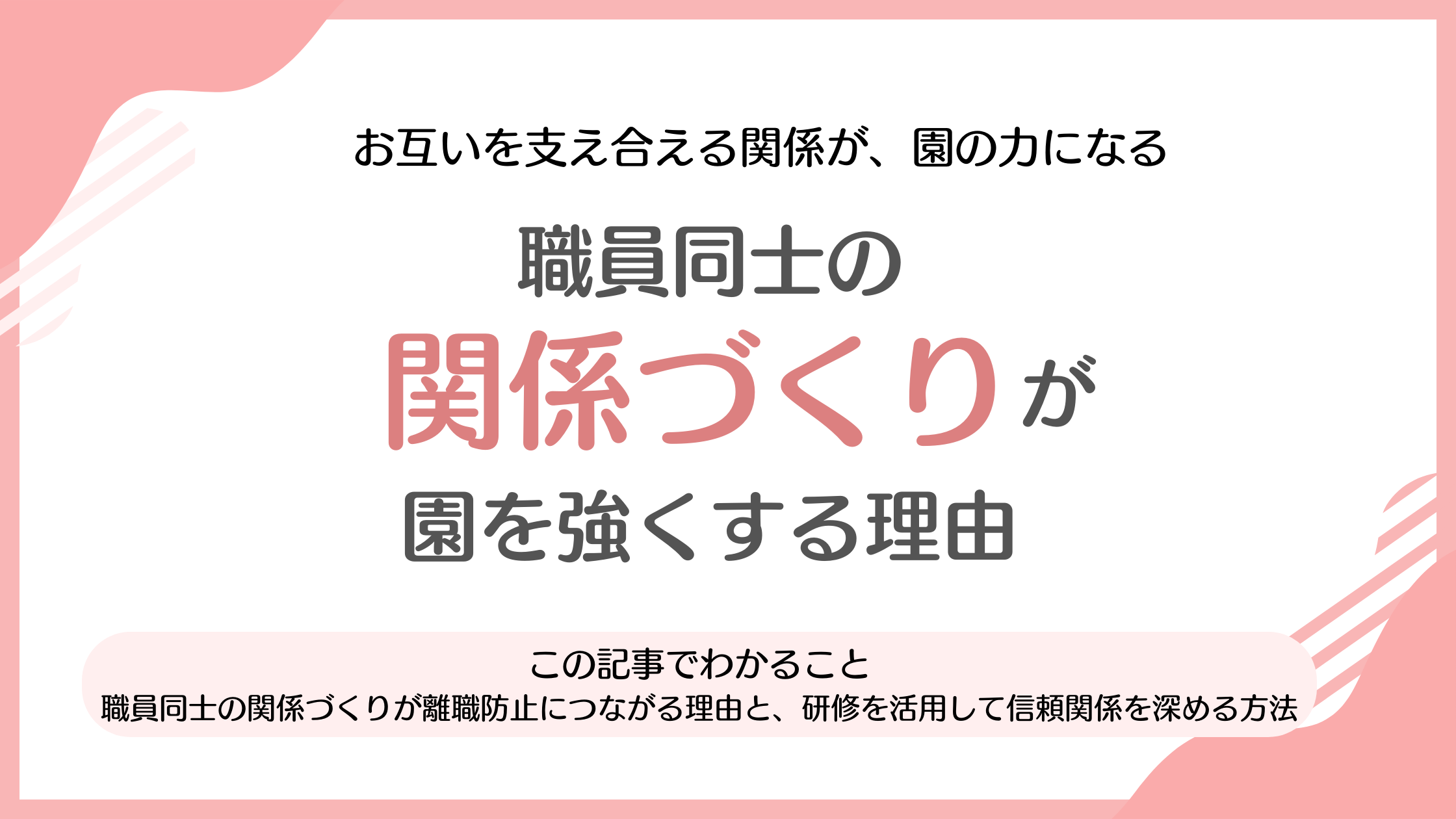 実際に研修を導入した園では「研修をきっかけに話すようになった」「気づけば職員同士で声をかけ合うようになった」という変化が生まれています。